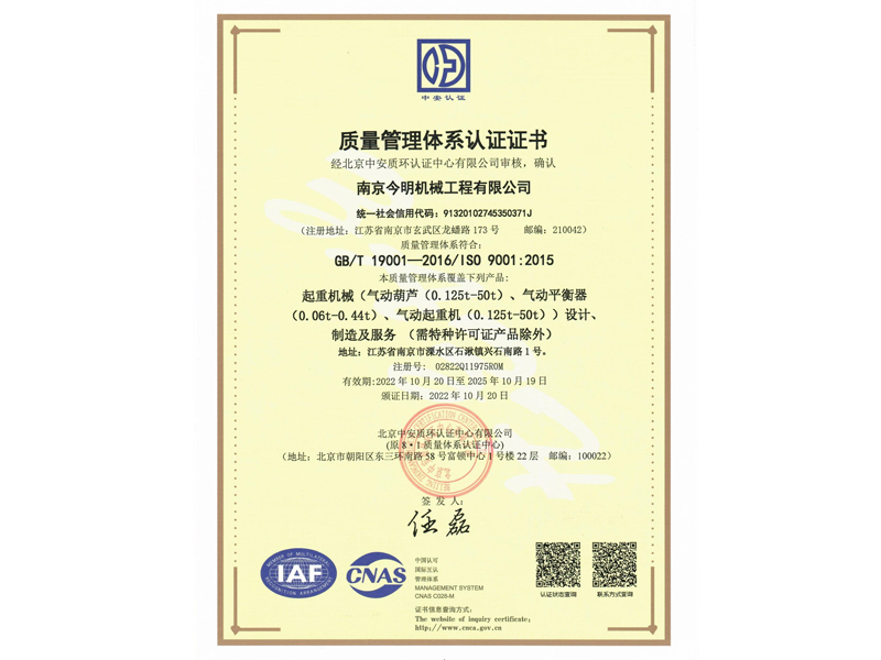 南京今明機(jī)械工程有限公司成立于一九九三年,歷經(jīng)二十多年磨練,沉淀了一批跟隨企業(yè)共同成長,技藝超凡、資深的高級工程師、技師、以及熟練的技術(shù)工人。企業(yè)的歷練和人才的智慧,鑄造出企業(yè)的核心競爭力。十年磨一劍。本著技術(shù)興業(yè),多年來,企業(yè)致力于氣動起重產(chǎn)品的研發(fā)與生產(chǎn)。在國內(nèi)氣動起重裝備領(lǐng)域具有良好的聲譽(yù)。并積極地與國家起重運(yùn)輸機(jī)械質(zhì)量監(jiān)督檢驗(yàn)中心、北京起重運(yùn)輸機(jī)械設(shè)計(jì)研究院、江蘇省科技廳、南航等高校和科研單位緊密合作,與國外知名企業(yè)建立戰(zhàn)略合作伙伴關(guān)系,廣泛吸收國內(nèi)外新技術(shù)經(jīng)驗(yàn),力求趕超國際先進(jìn)氣動起重裝備的技術(shù),打造國內(nèi)氣動起重裝備行業(yè)新軍。目前,企業(yè)已開發(fā)五大系列近百個品種的產(chǎn)品,覆蓋了化工、汽車、機(jī)械、冶金、礦山等二十多個行業(yè),并在全國三十多個省份擁有客戶。企業(yè)堅(jiān)持用心做好每個環(huán)節(jié),精心打造讓客戶滿意的產(chǎn)品,力求...